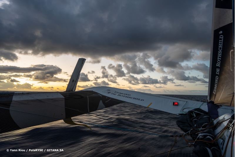 Parti de Ouessant le 10 janvier dernier à 2h33, l’équipage du Maxi Edmond de Rothschild a enregistré sa première semaine de tentative de record sur le Trophée Jules Verne la nuit dernière au large du Brésil. Sept jours durant lesquels le dernier-né des Gitana a parcouru 4 700 milles sur le fond, c’est-à-dire réellement sur l’eau, à la vitesse moyenne de 28 nœuds. Quand on sait que ce dernier chiffre englobe les 24 heures de quasi arrêt dans le Pot-au-Noir, on mesure que la vie défile sur Gitana 17.  Ce long bord bâbord amure, cap au Sud, démarré depuis la sortie de la Zone de Convergence Intertropicale, marque clairement une transition entre deux temps forts de la descente de l’Atlantique. Des heures plus « paisibles », mais tout aussi rapides, que l’équipage apprécient à leur juste valeur : « Tout va bien à bord ! C’est assez calme ici. Les conditions nous permettent non seulement de nous reposer, car les températures ne sont ni trop chaudes ni trop fraîches, et que la combinaison d’une mer ordonnée et d’un vent médium nous permet de faire du gain sur la route. On a dû faire un plus de 700 milles en une journée hier, avec un vent d’une quinzaine de nœuds c’est quand même hyper satisfaisant » confiait Yann Riou au lever du jour.