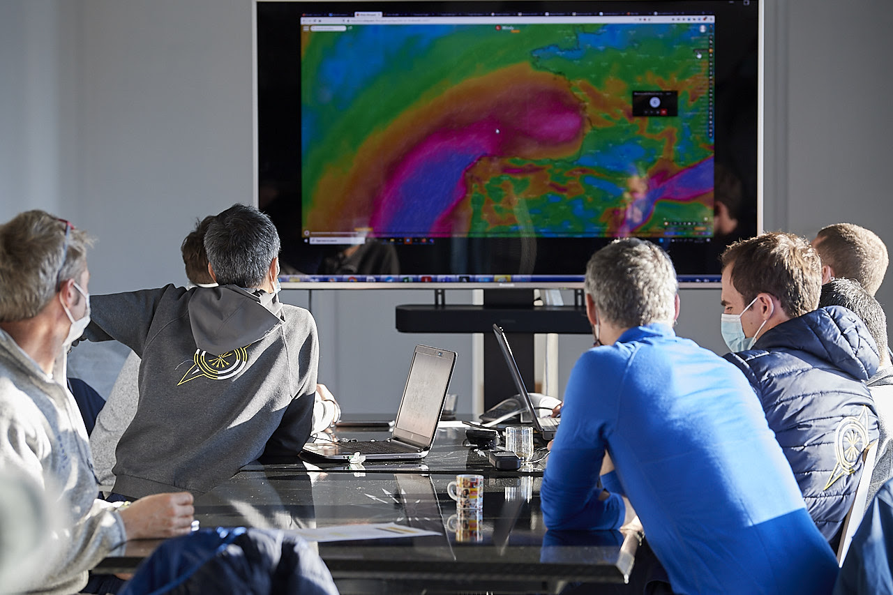 After a final weather briefing on shore and via a remote link to Marcel van Triest, router and 7th man, the six sailors from the five-arrow racing stable headed down to the 32-metre trimaran shortly after 14:00 UTC, eager to set sail on the quest for the title of the fastest sailboat around the world. Choosing the day and time of departure in relation to weather forecasts deciphered and analysed with surgical precision is a rather special art, peculiar to the Jules Verne Trophy. With regards this little game, which involves selecting the best launch window, the crew of the Maxi Edmond de Rothschild have been impatient to get going, but have learned to put up with the delay. However, the moment has now come and with a clear weather sequence across the whole of the Atlantic, they’re finally in the starting blocks and ready to set sail on this furious race against the clock. “We set off right at the start of standby, but we knew that the situation wasn’t ideal. Since our return, we’ve seen and observed six windows, which ultimately closed. As such, we’re especially happy to be going for it now with a weather configuration which, though still a little uncertain in terms of the low-pressure systems in the southern hemisphere, is providing us with a great opportunity”, explains Franck Cammas.