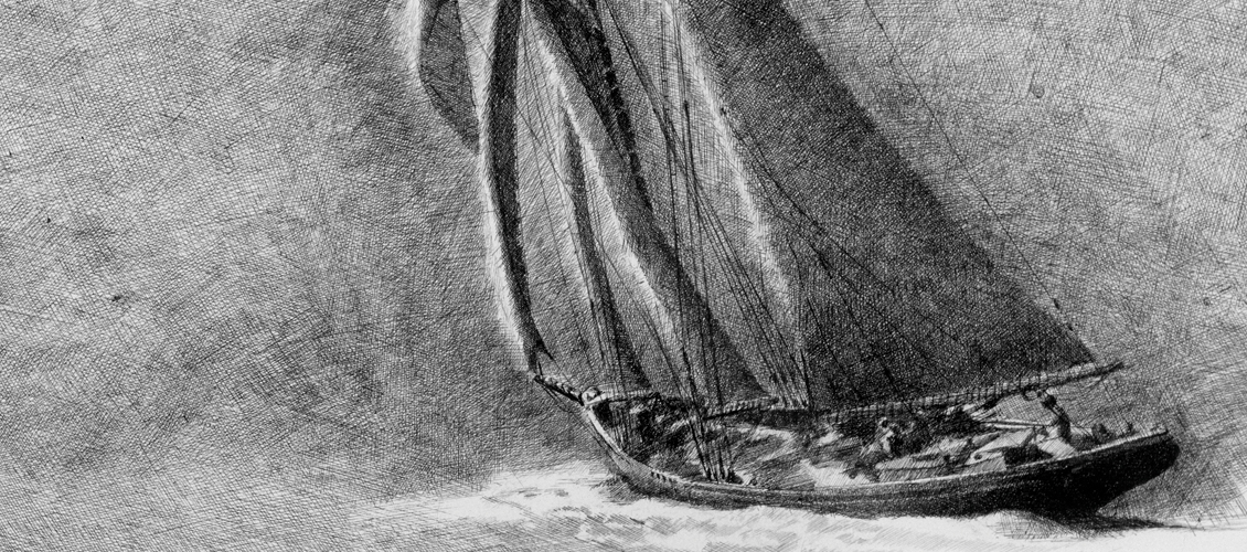 Titouan Lamazou’s TAG HEUER and the legendary shooner Bluenose, drawn by Titouan. ©Photo Gilles Martin-Raget