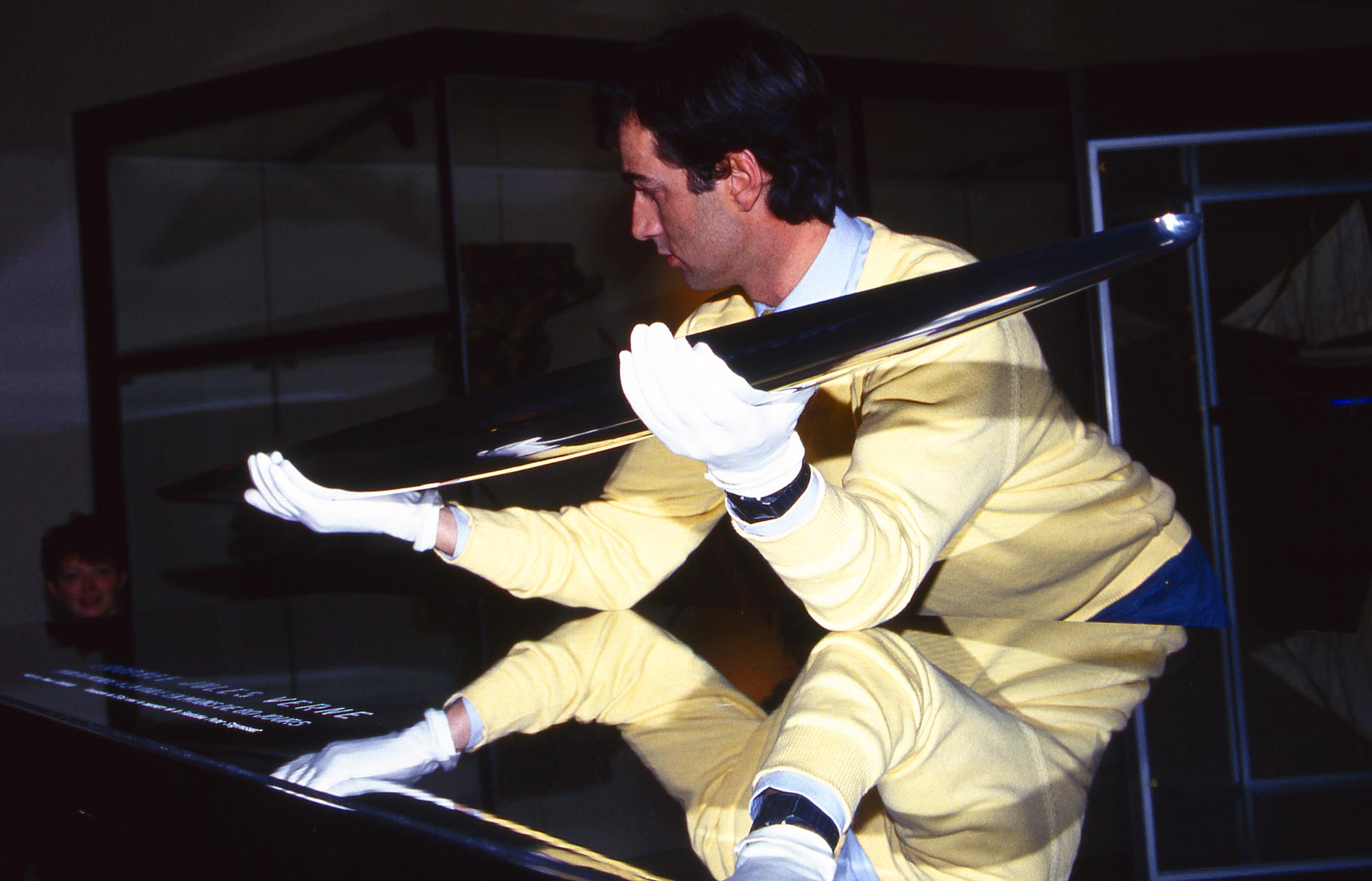 The Jules Verne Trophy was placed under the High Patronage of the French Ministry of Culture. It was created following a call for tenders financed by the ministry, won by US artist Tom Shannon. The original sculpture remains the property of the French State and is conserved in the Paris Marine Museum. The Trophy would be presented to the skipper who beat the circumnavigation speed record in under 80 days. And its holder would in turn hand it over to whoever bettered his or her record.