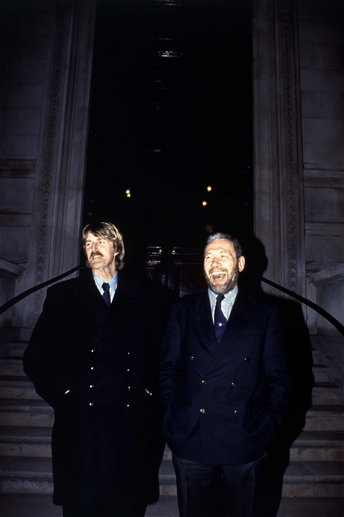 Sir Peter Blake and Sir Robin Knox-Johnston on the doorstep of the Yacht Club de France. The Sir Peter Blake Trust Collection / Alan Sefton.