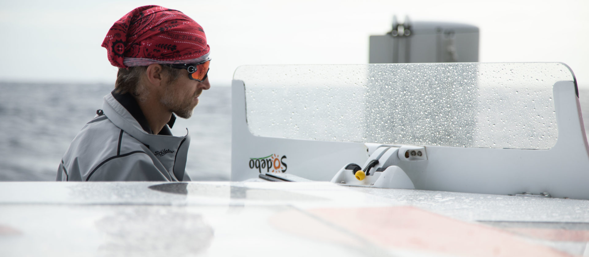 « On a désormais trouvé notre rythme, on sent que tout le monde est plus à l’aise sur ses quarts ; la nuit dernière (de dimanche à lundi), nous étions tous un peu KO parce que nous avions pas mal bossé dans le Pot-au-noir, ce n’est en plus pas évident de dormir la journée, il fait très chaud à l’intérieur. Mais tout va bien, nous n’avons pas de grosse casse, juste un peu de bricolage, et dans ce cas, on a notre McGyver (le boat-captain François Duguet), qui, dès qu’il y a un peu de moins de vent, sort la caisse à outils. »