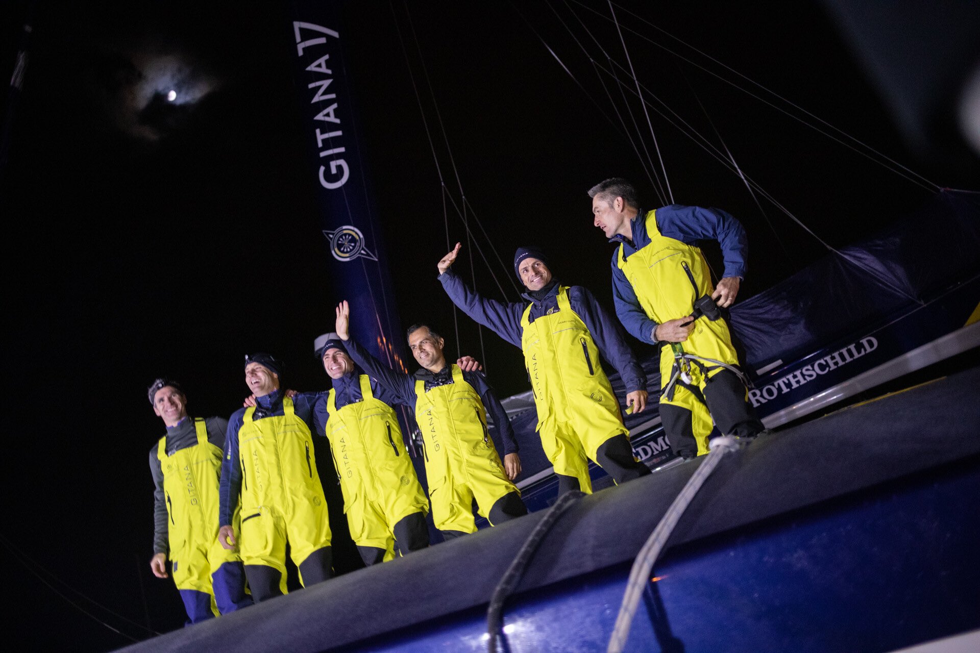 Il y a de l’agitation dans l’air du Trophée Jules Verne ! Pour le Gitana Team, l’heure a bel et bien sonné de larguer les amarres pour rejoindre la ligne de départ au large de Brest. Après beaucoup d’incertitudes, la décision de s’élancer dans une chasse au record absolu de vitesse autour du monde l’a finalement emportée ce mardi soir. L’équipage du Maxi Edmond de Rothschild a quitté le ponton de sa base de Lorient à 21h37 après des aurevoirs rapides dans les frimas de ce début de nuit d’automne. Franck Cammas, Charles Caudrelier, Erwan Israël, Yann Riou, Morgan Lagravière et David Boileau devraient couper la ligne virtuelle entre Ouessant et le cap Lizard sur les coups des 3h du matin.